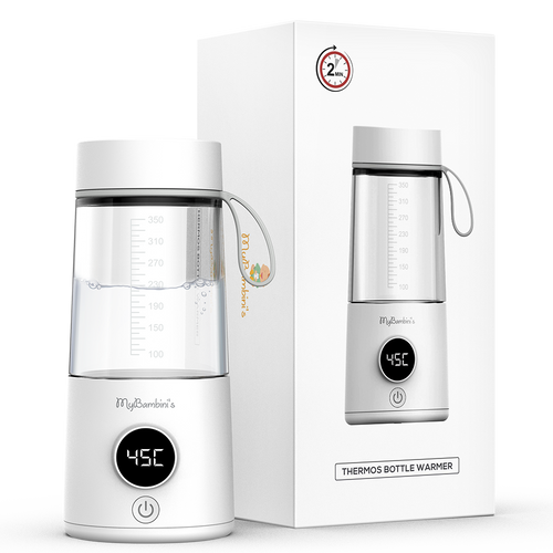 The main difference between the MyBambini's bottle warmers and the Thermos bottle warmer is that the Thermos already has a bottle attached to it. The 350 ml bottle is bigger than most baby bottles. Which makes it ideal to feed multiple baby bottles on a long trip.